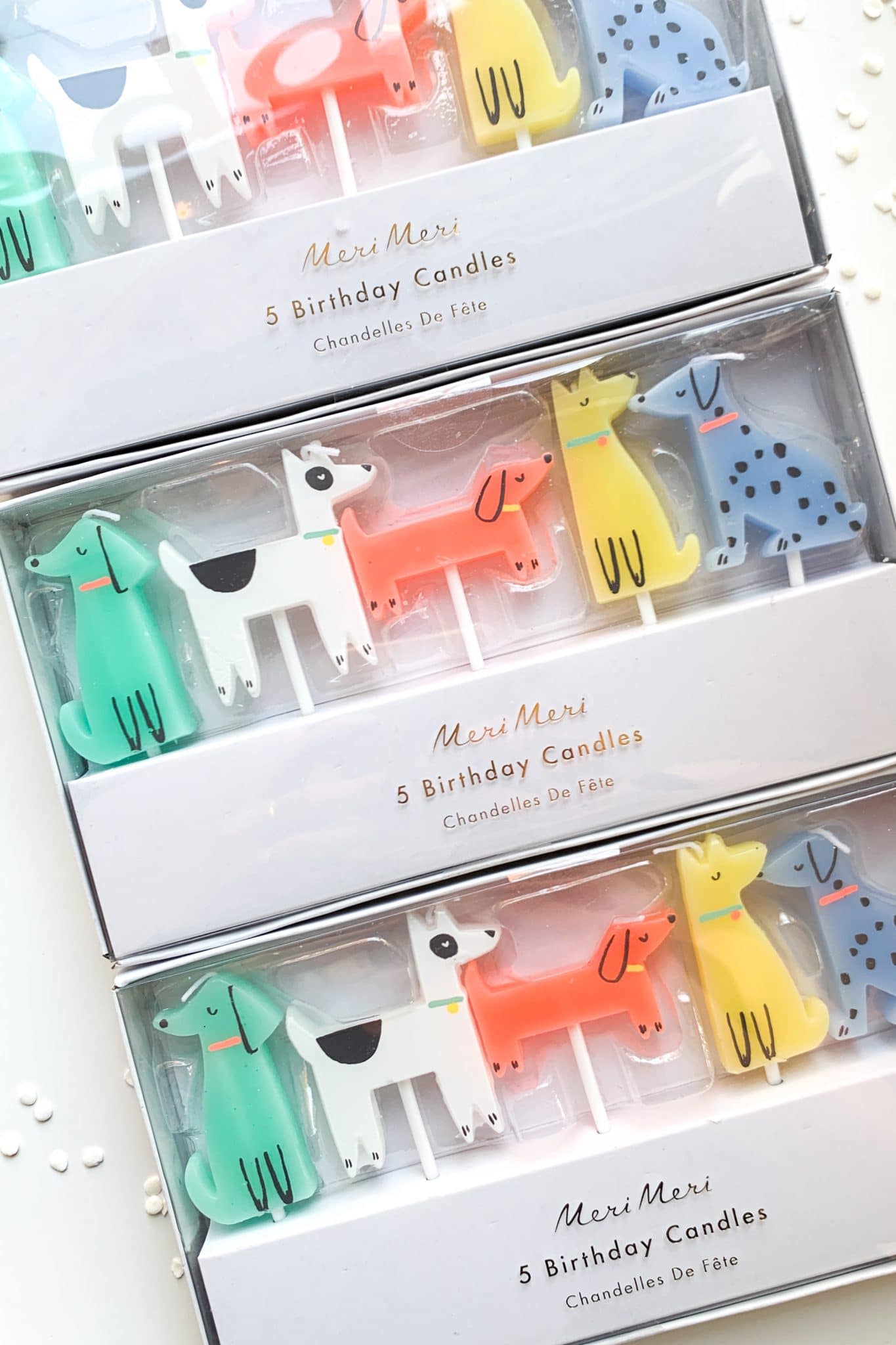 An adorable addition to any celebration cake! Each pack contains five candles in five different dog shapes.