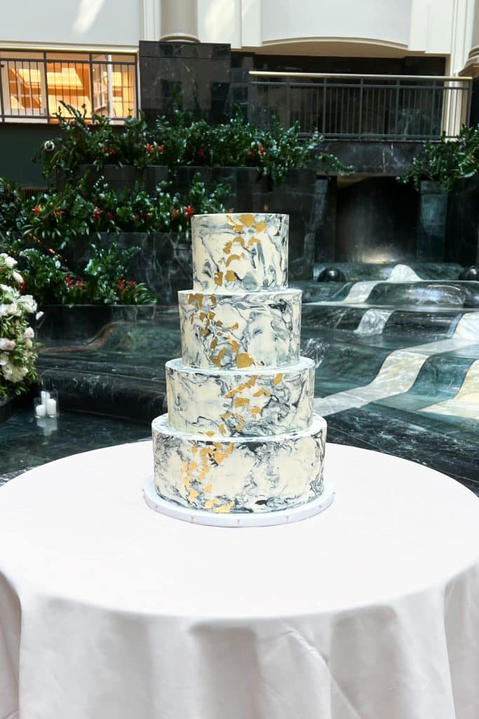 Beautiful marbled buttercream accented with gold leaf make this cake extra special!