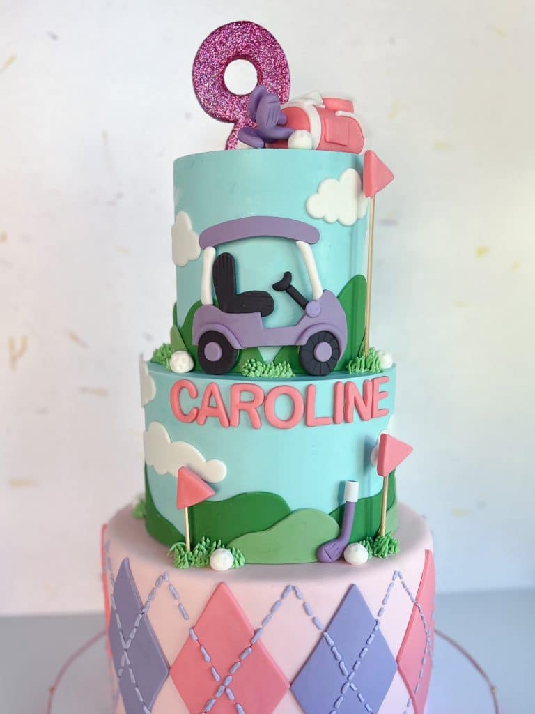 This golf-themed cake comes complete with an argyle base tier and a giant golf ball topper all teed up and ready to go!