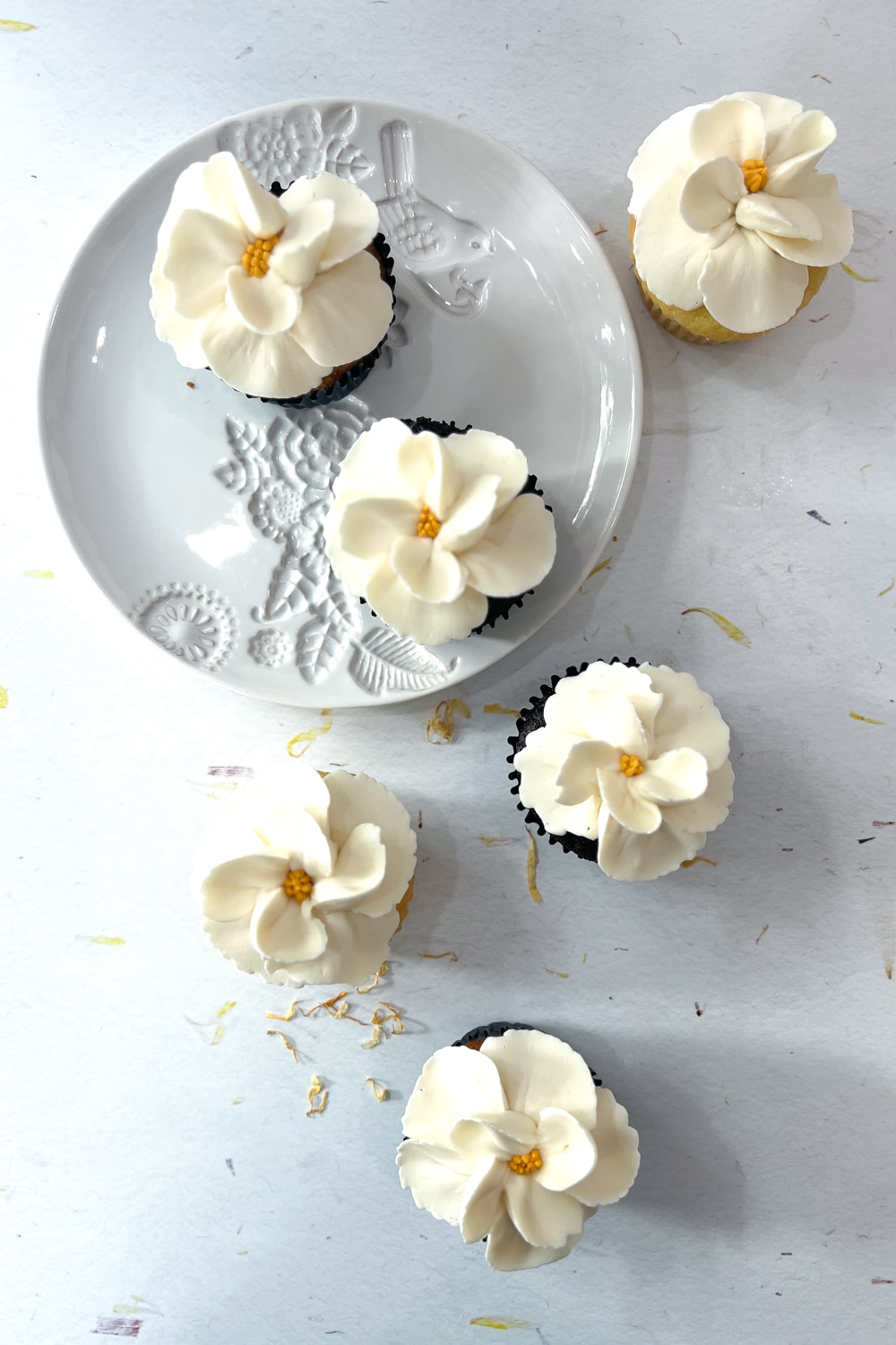Flavor Profile: Our cupcakes provide the perfect canvas for the delicate floral magnolia design, while the Swiss meringue buttercream adds a sophisticated, creamy finish that’s not overly sweet.