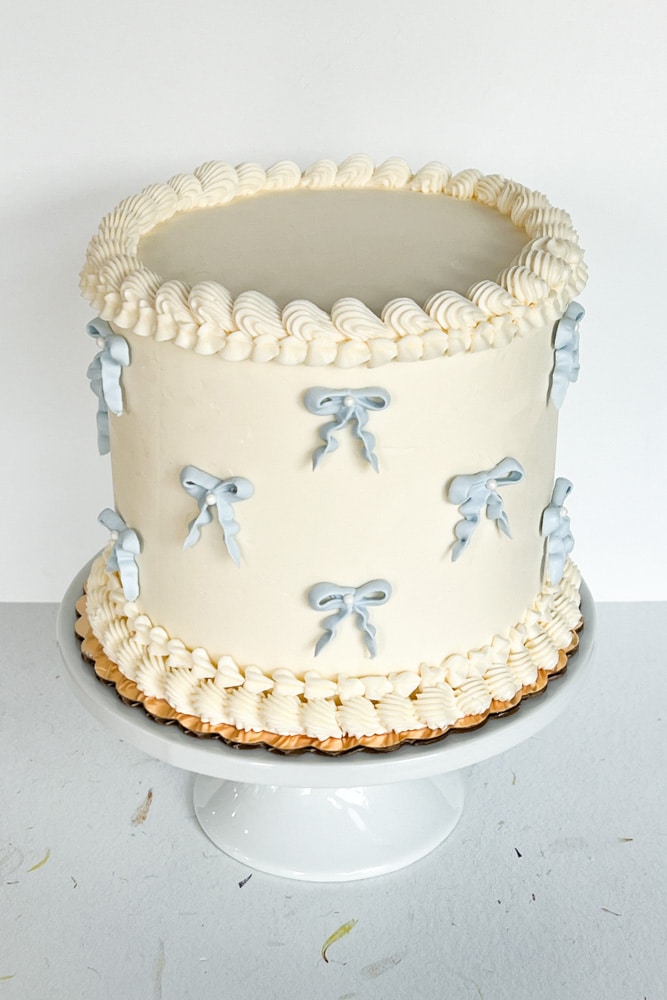 Add a touch of charm to your celebration with our Sweet Bow cake. Featuring an adorable buttercream bows and elegant piped details, this cake is perfect for birthdays, baby showers, bridal showers and special occasions.