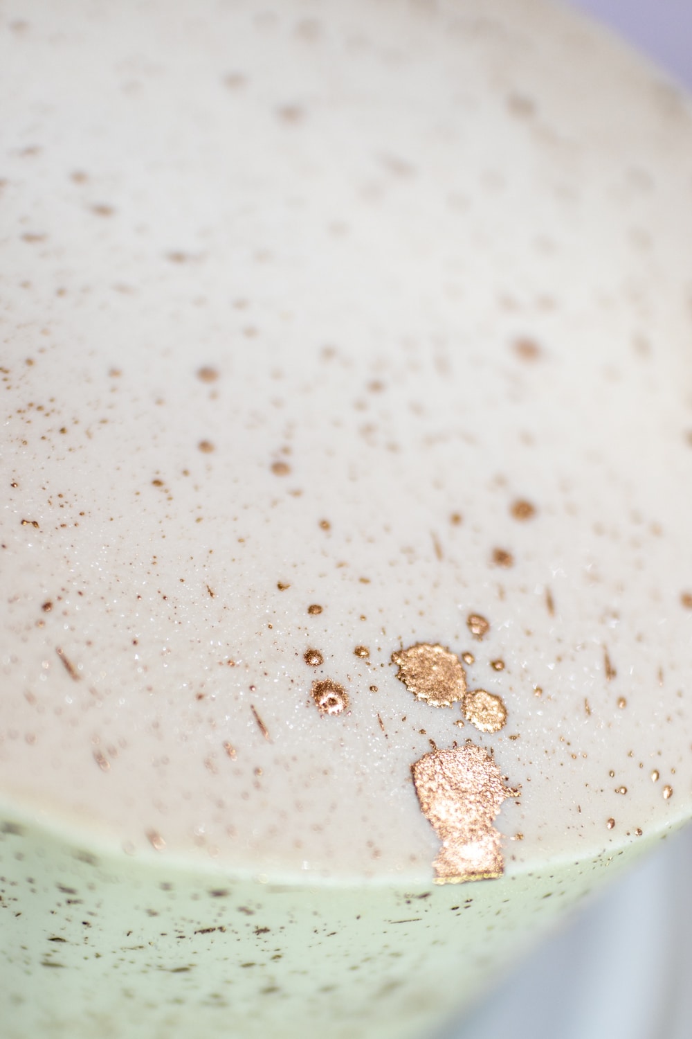 This classic cake is perfect for celebrating everything from micro-weddings to birthdays! The outside of the cake is artfully iced with smooth vanilla meringue buttercream and finished with a metallic deckled edge and dried floral sprinkles. Main photo is a 4/6″ size.