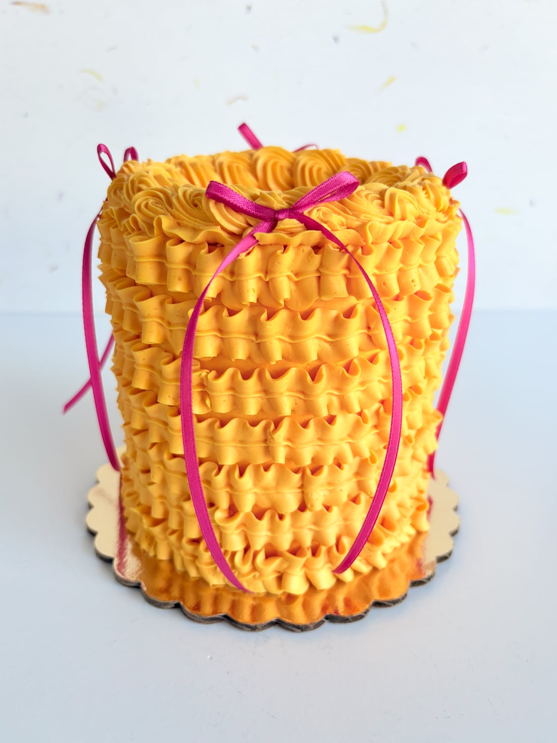 This adorable 4″ diameter Ruffled Party Cake cake is ideal for any small celebration. It works perfectly as a birthday or a cute baby smash cake. Available in our most popular funfetti and chocolate cake pairings. 4-6 servings.