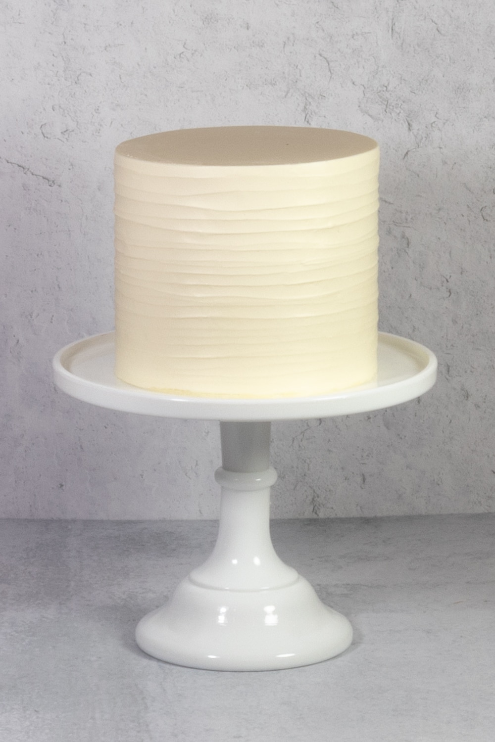 Our Banded Buttercream cake is available in multiple sizes to serve small gatherings or even larger parties such as a small wedding. 6″ serves 10-12, 8″ serves 15-20, 4/6 micro tiered cake serves 15-18, 6/8 tiered cake serves 30-40. If you need a larger size, please text 215-598-5449!