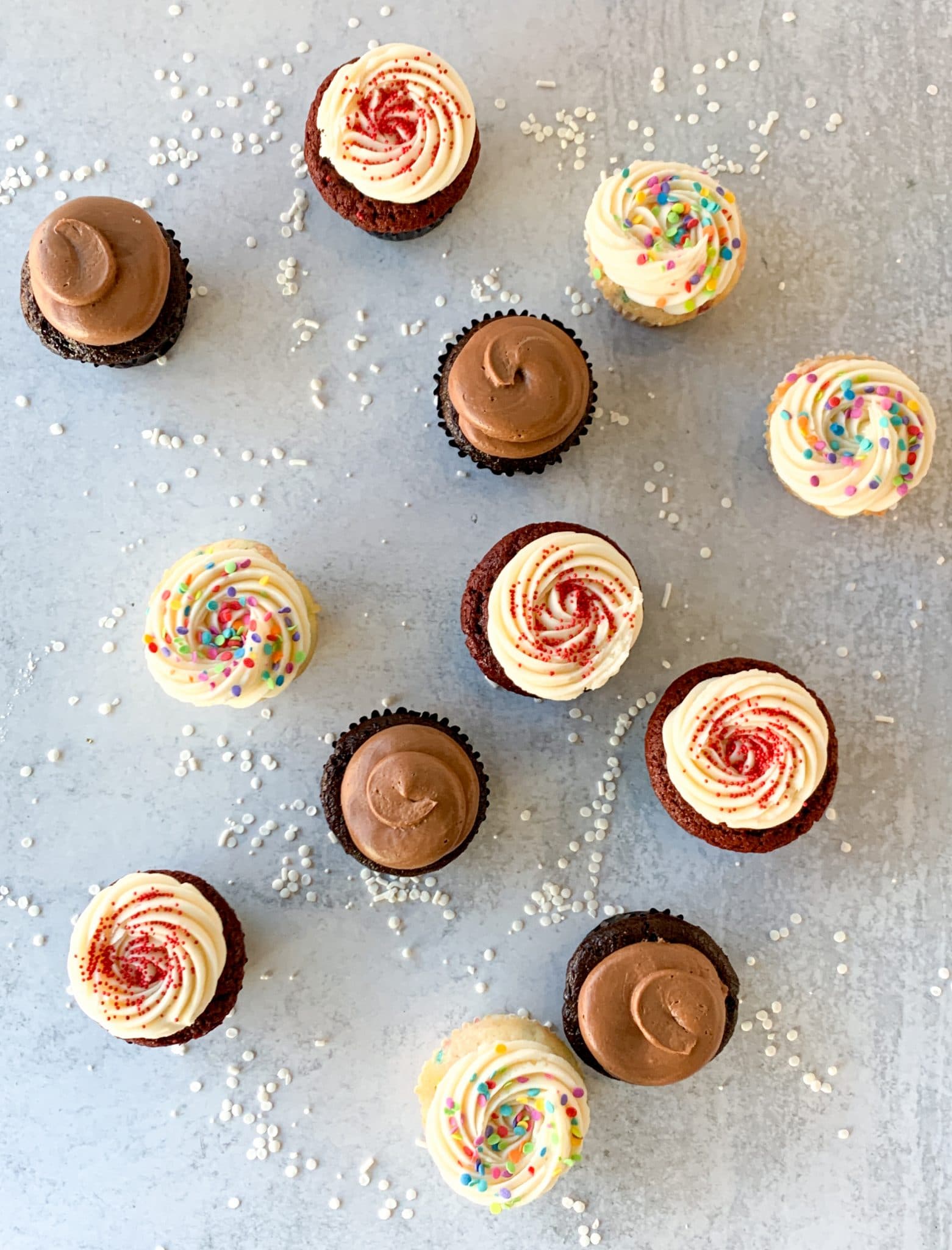Send an assortment of our delicious cupcakes to someone you love! Perfect for birthdays, thank you gifts, or just to show you care. This assortment includes a mix of our fan-favorite funfetti, red velvet, and double chocolate midnight cupcakes.