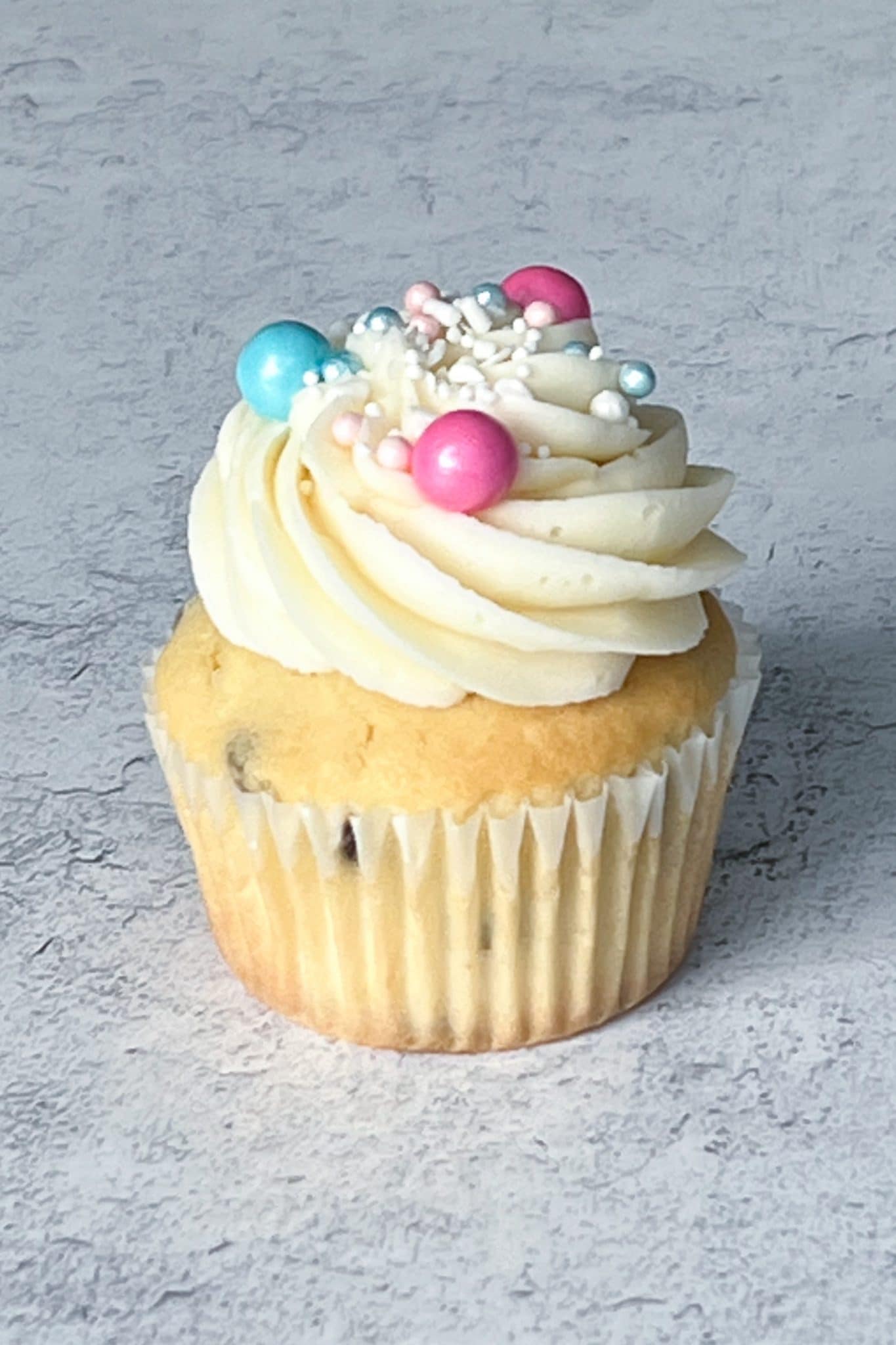 Our gender reveal cupcakes are topped with old fashioned vanilla buttercream + a festive sprinkle mix, and filled with pink or blue tinted hidden icing in the center. *You can optionally choose to drop off your results at the shop, so that we can keep the surprise. We just need the results at least two days prior to your cupcake pickup.