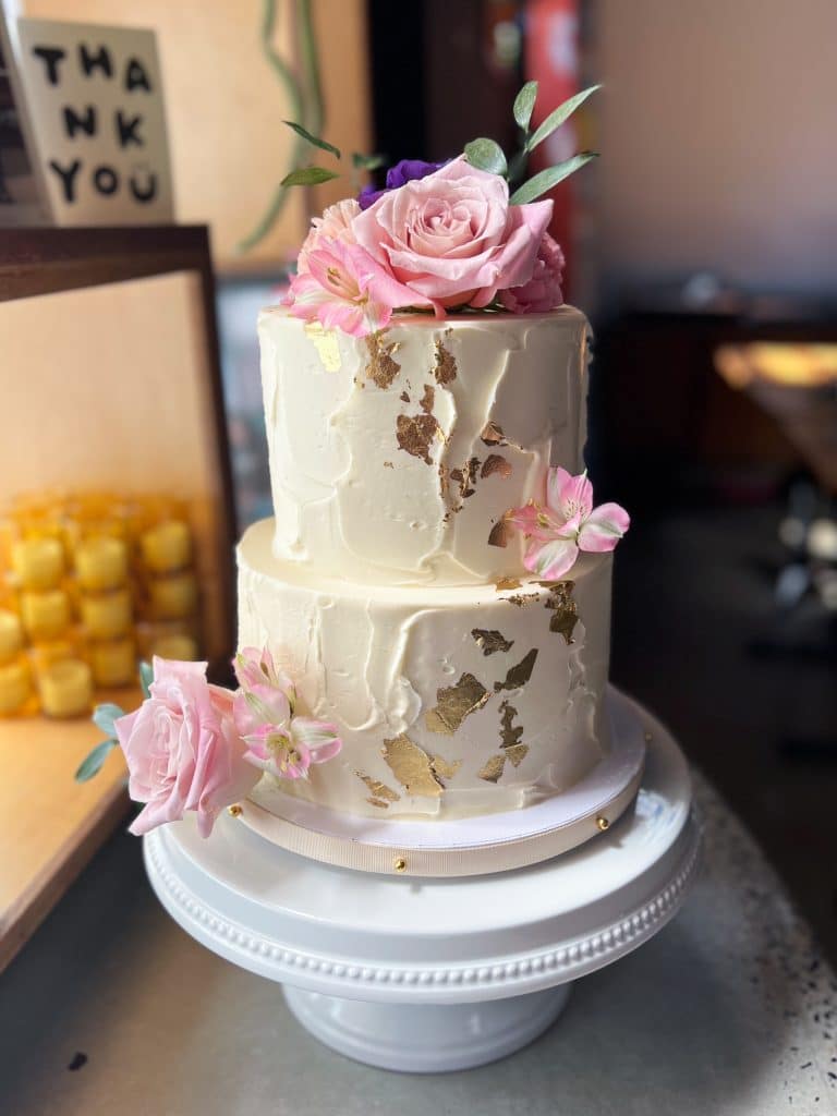 Rustic vanilla meringue buttercream finishes this classic wedding cake. We love adorning this style of cake with fresh berries or flowers.