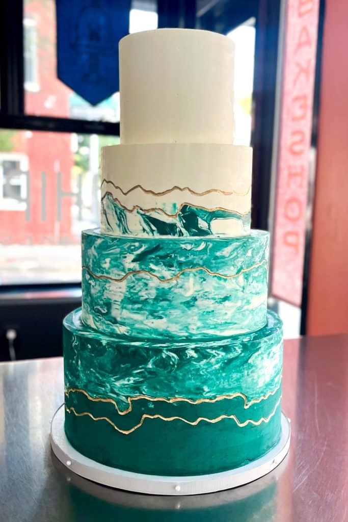 Beautiful marbled buttercream accented with gold leaf make this cake extra special!