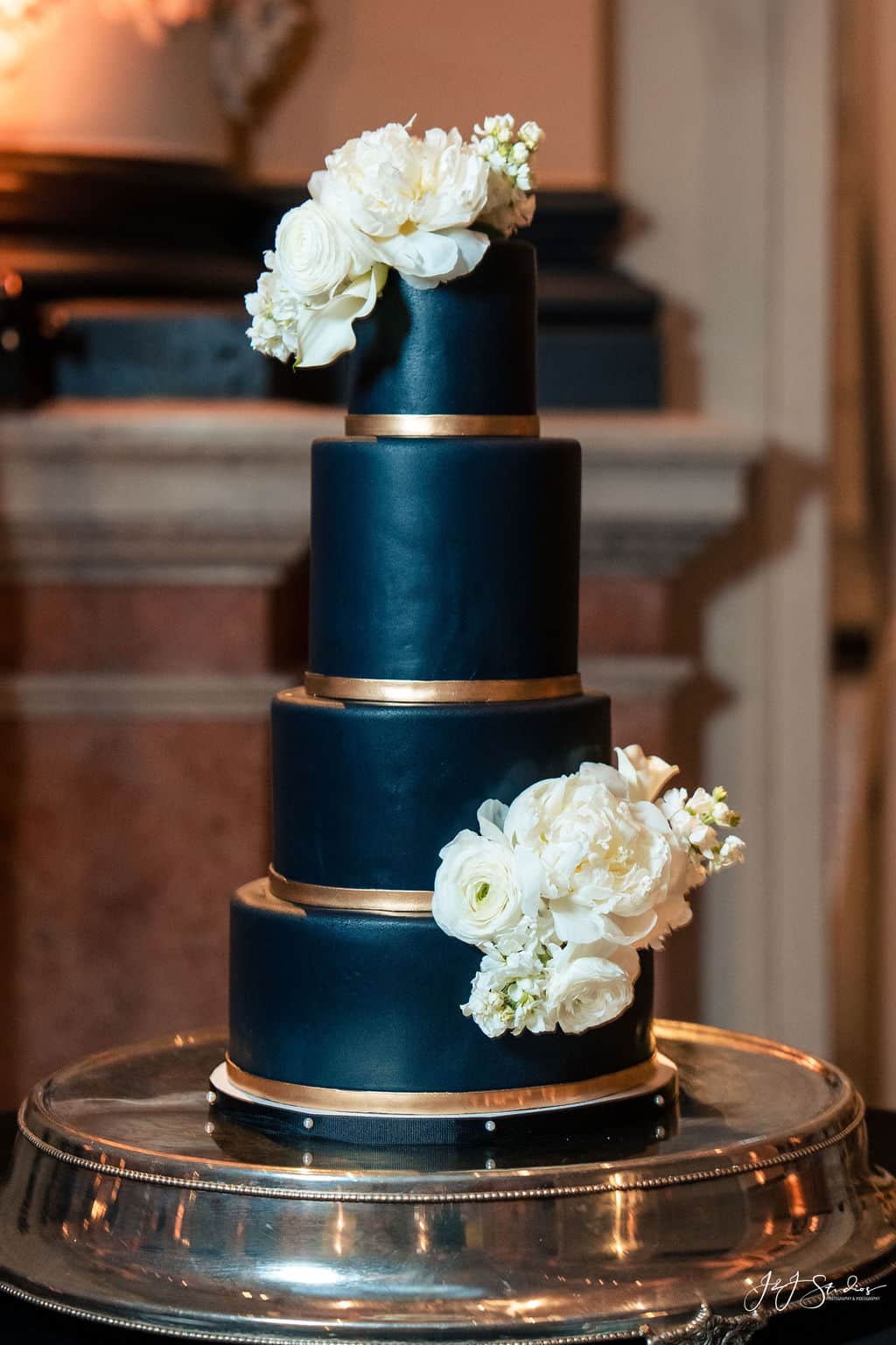 The dramatic, clean lines of a black wedding cake make are the perfect backdrop for just about any and all greenery and flowers from your florist. We love the addition of gold for a touch of glamour!
