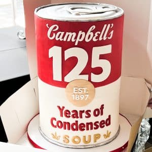 We recently helped Campbell’s Soup celebrate the 125th anniversary of their invention of condensed soup. We made a giant soup can cake (4:1 scale), several serving cakes and over 500 cupcakes using Campbell’s own Tomato […]