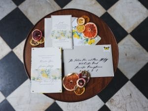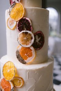 Partnering with Truly You Events, we created this one-of-a-kind citrus themed wedding cake for a BHLDN styled shoot that just appeared in Modern Luxury Weddings. Our four-tiered design features a rustic vanilla buttercream finish with mimosa cake layers filled with orange meringue buttercream. Dehydrated grapefruit, blood orange, lemon and orange slices embellished with gold complete the look. Photos by the amazing Alison Conklin. Scroll down to see all of the local vendors that made this magic happen!
