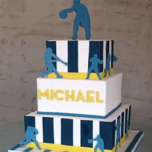 This three-tier square cake celebrated the Bar Mitzvah of a real sports fan. We used the invitation as inspiration for the geometric design, and you can see the original concept images below. The cake was […]