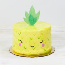 This past week, we had so much fun making fruit-themed first birthday desserts for Jen, one of our long-time customers. As part of the display, we made a watermelon smash cake, our “Paulette the Pineapple” mini cake and a brand new “Clark the Kiwi” mini cake design.