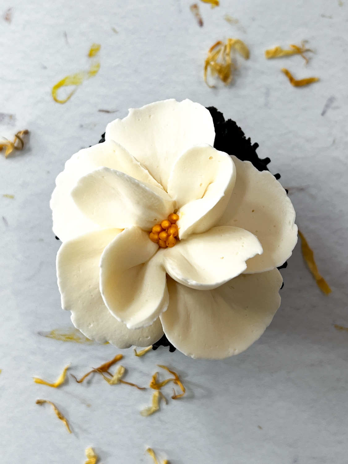 Flavor Profile: Our cupcakes provide the perfect canvas for the delicate floral magnolia design, while the Swiss meringue buttercream adds a sophisticated, creamy finish that’s not overly sweet.